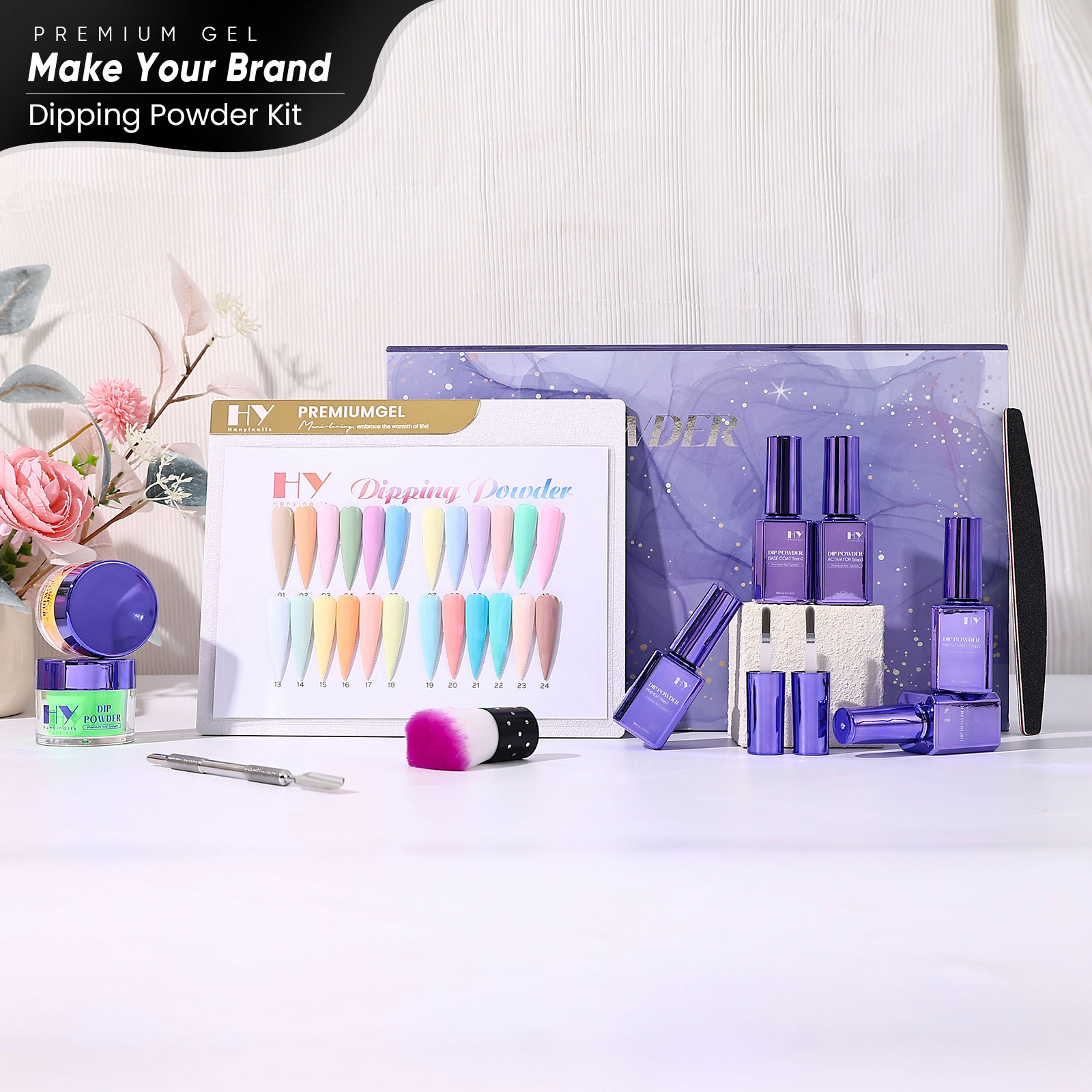 14-Piece Dipping Powder Kit – Private Label OEM | No-Lamp Nail System for Salons & Retailers