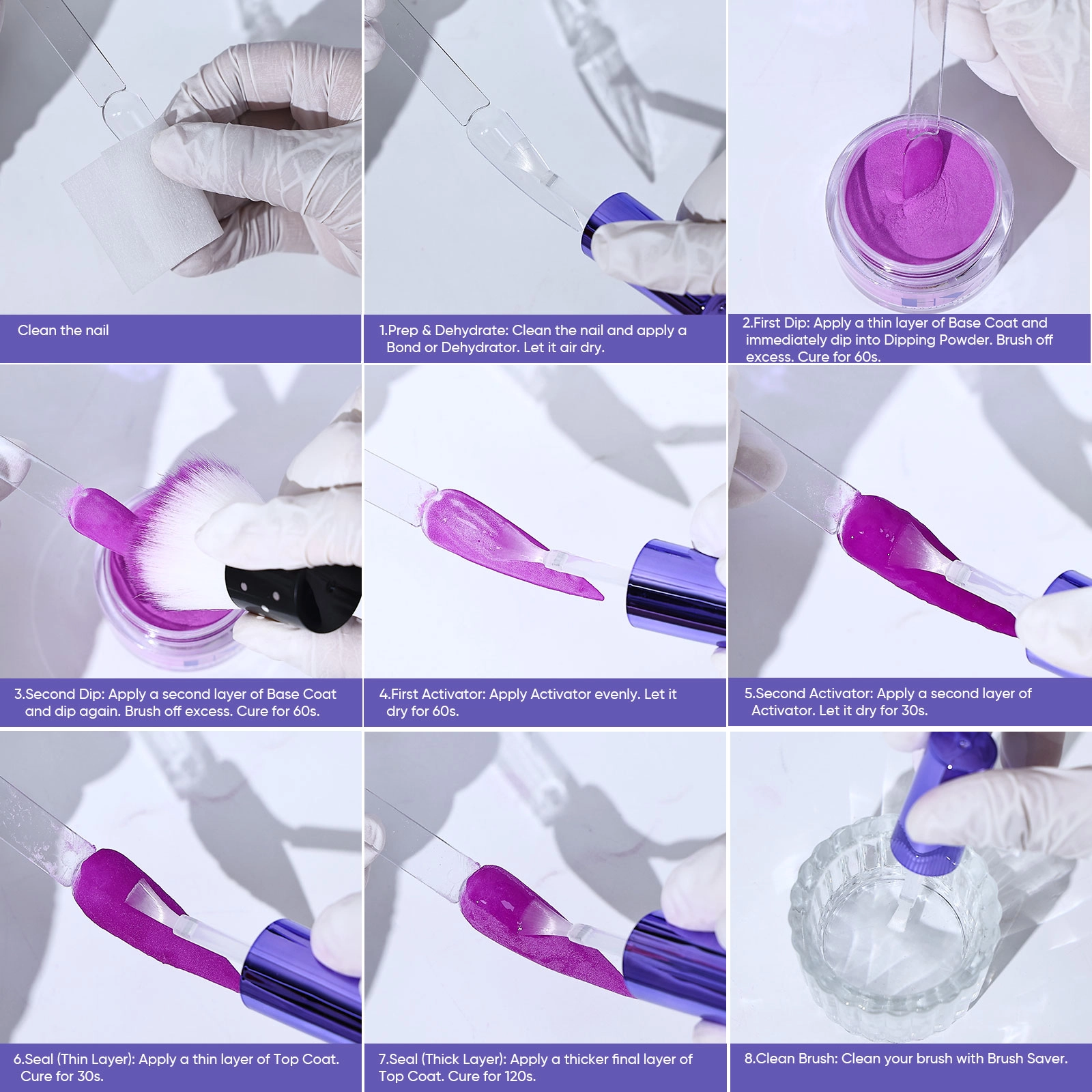 Acrylic & Dipping Powder: Dipping Steps, Monomer, 3-in-1 Gel & Polish & Gel & Polish & Powder Matching.