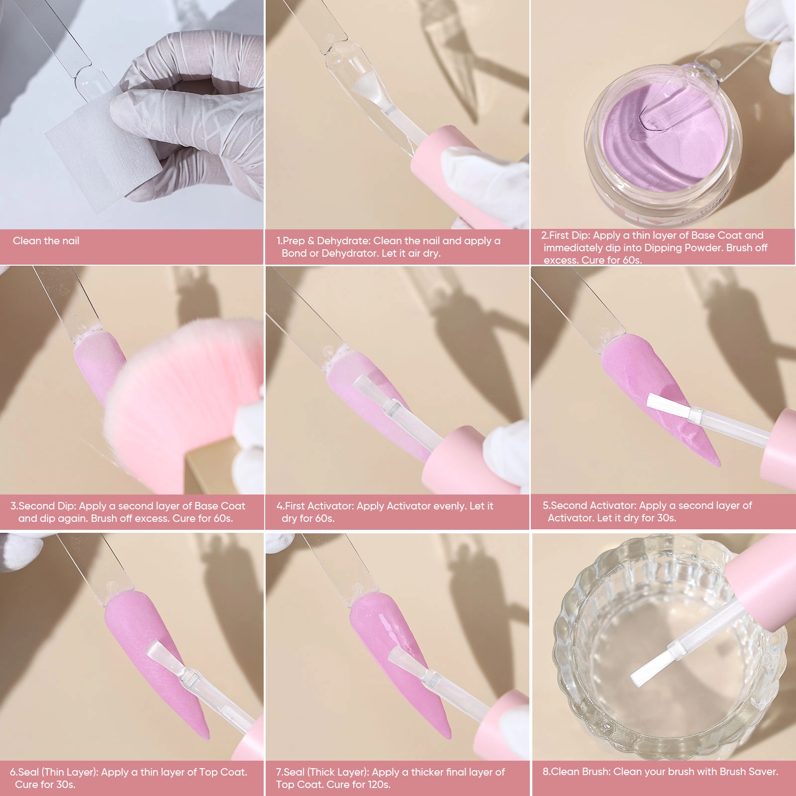 Acrylic & Dipping Powder: Dipping Steps, Monomer, 3-in-1 Gel & Polish & Gel & Polish & Powder Matching.
