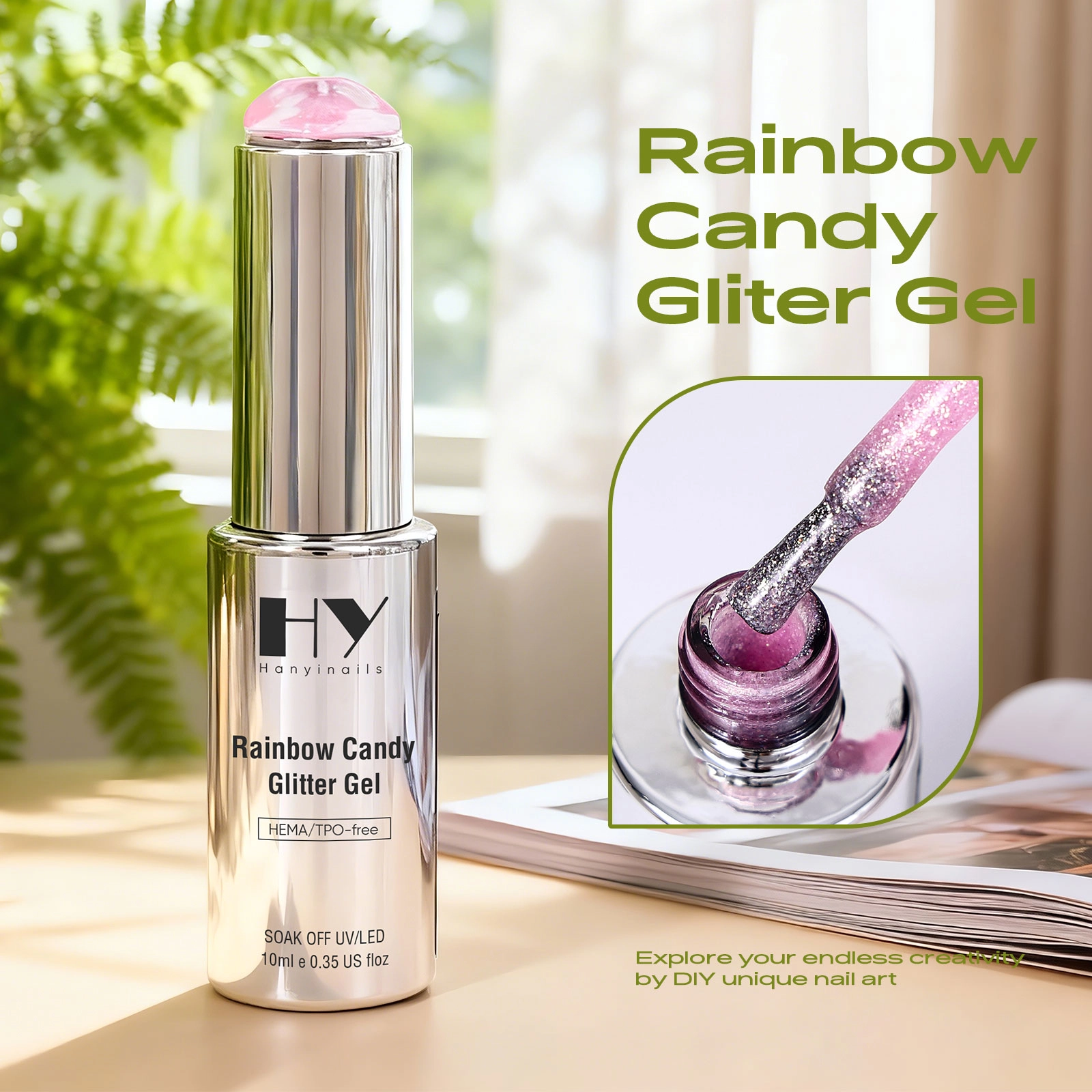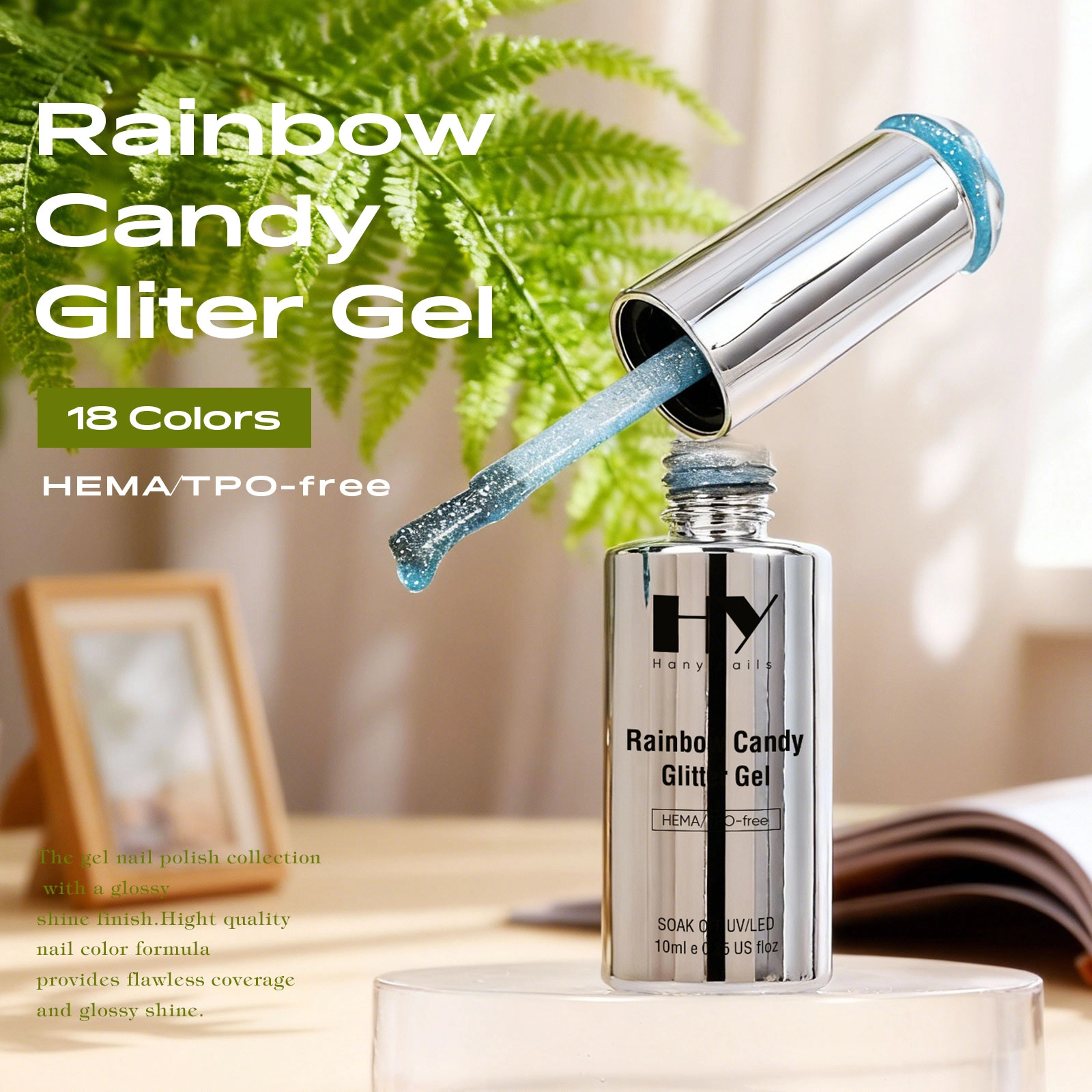 Light Up Your Nails with Our Rainbow Candy Glitter Gel Collection