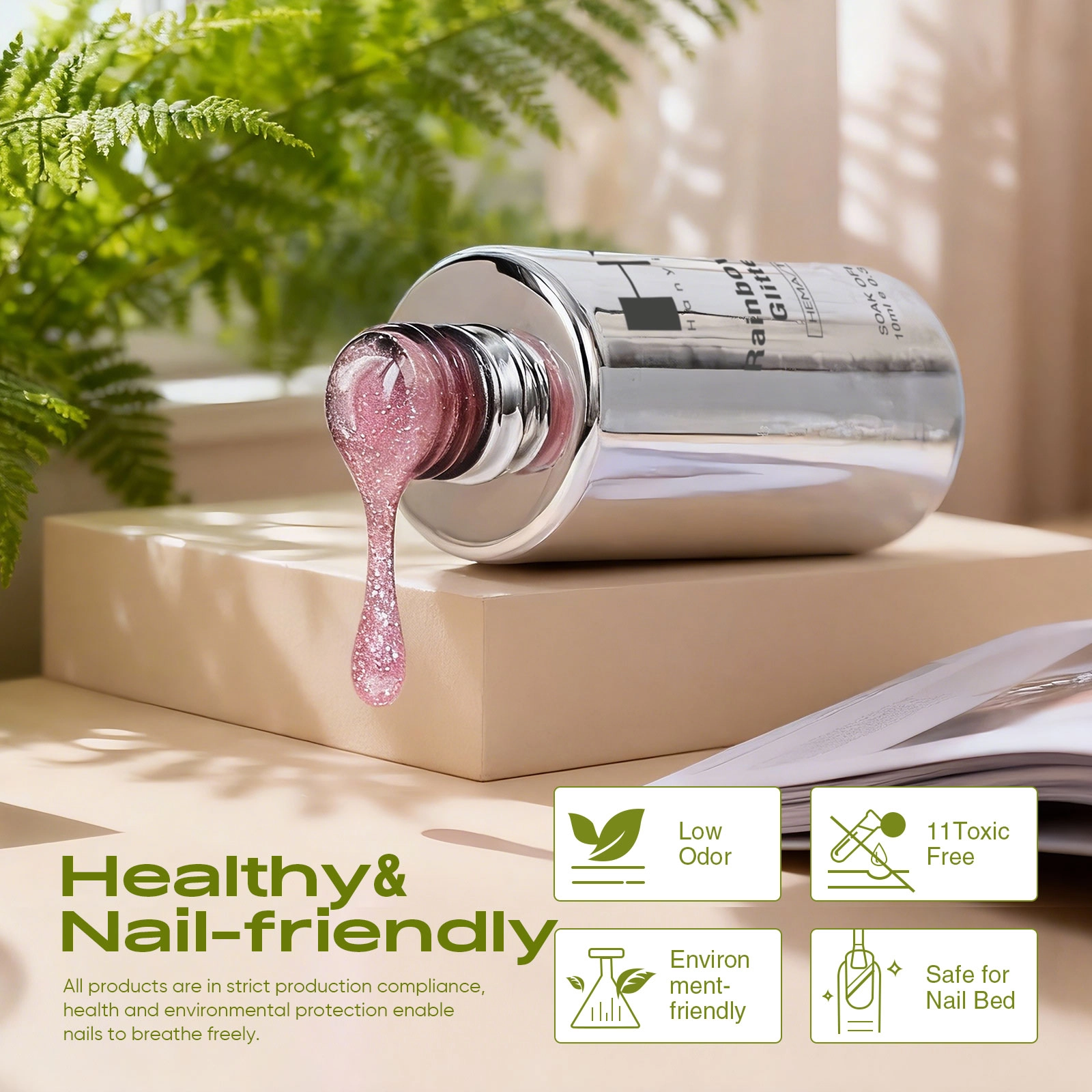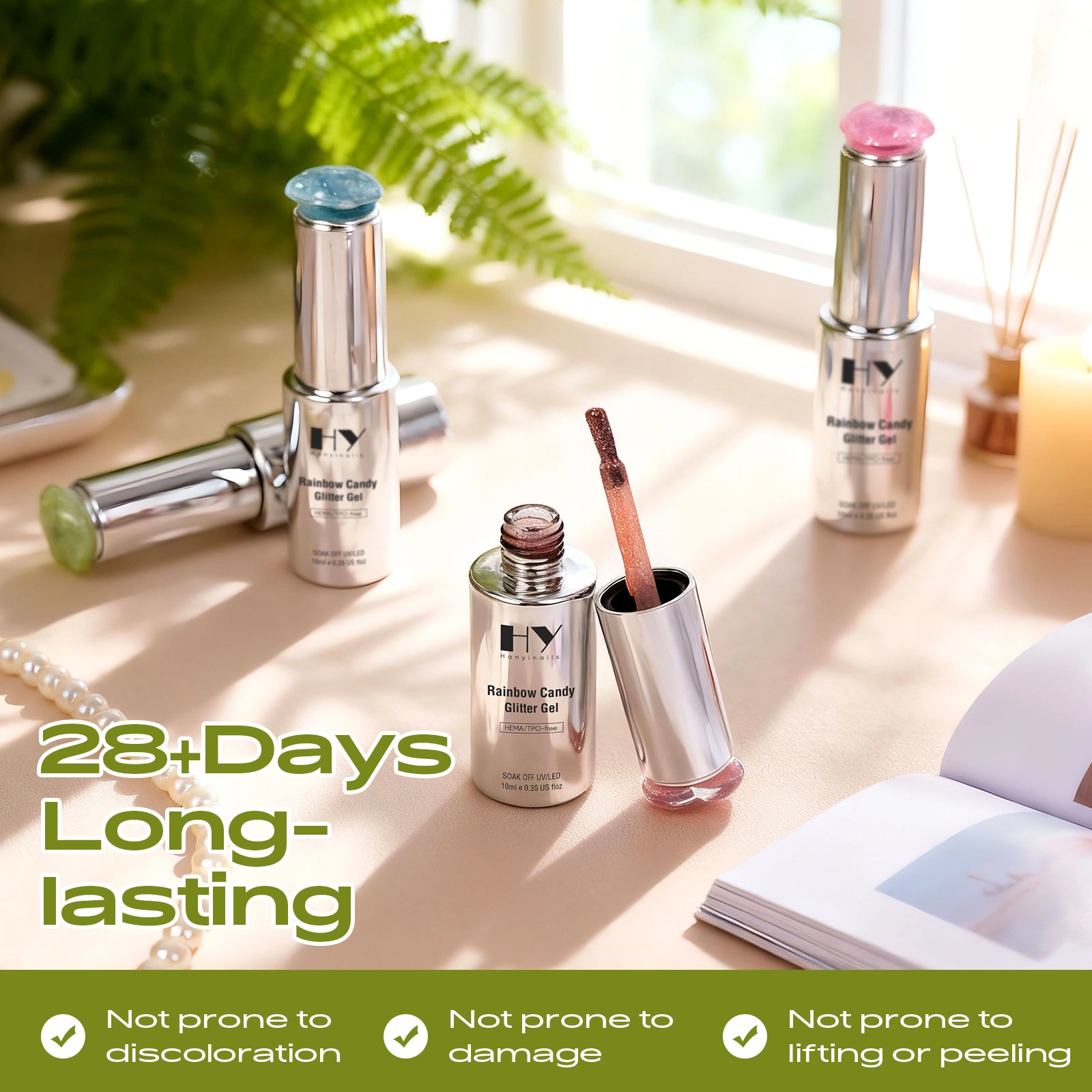 Whether you're a professional nail artist or someone who loves dazzling nails, our Rainbow Candy Glitter Gel brings vibrant sparkle and holographic effects to every manicure. Specially formulated to be HEMA/TPO-free, this glitter gel delivers brilliant shine and dimensional sparkle while being gentle on natural nails. Ideal for party nails, holiday looks, or everyday glam, this collection helps you create eye-catching designs with ease.