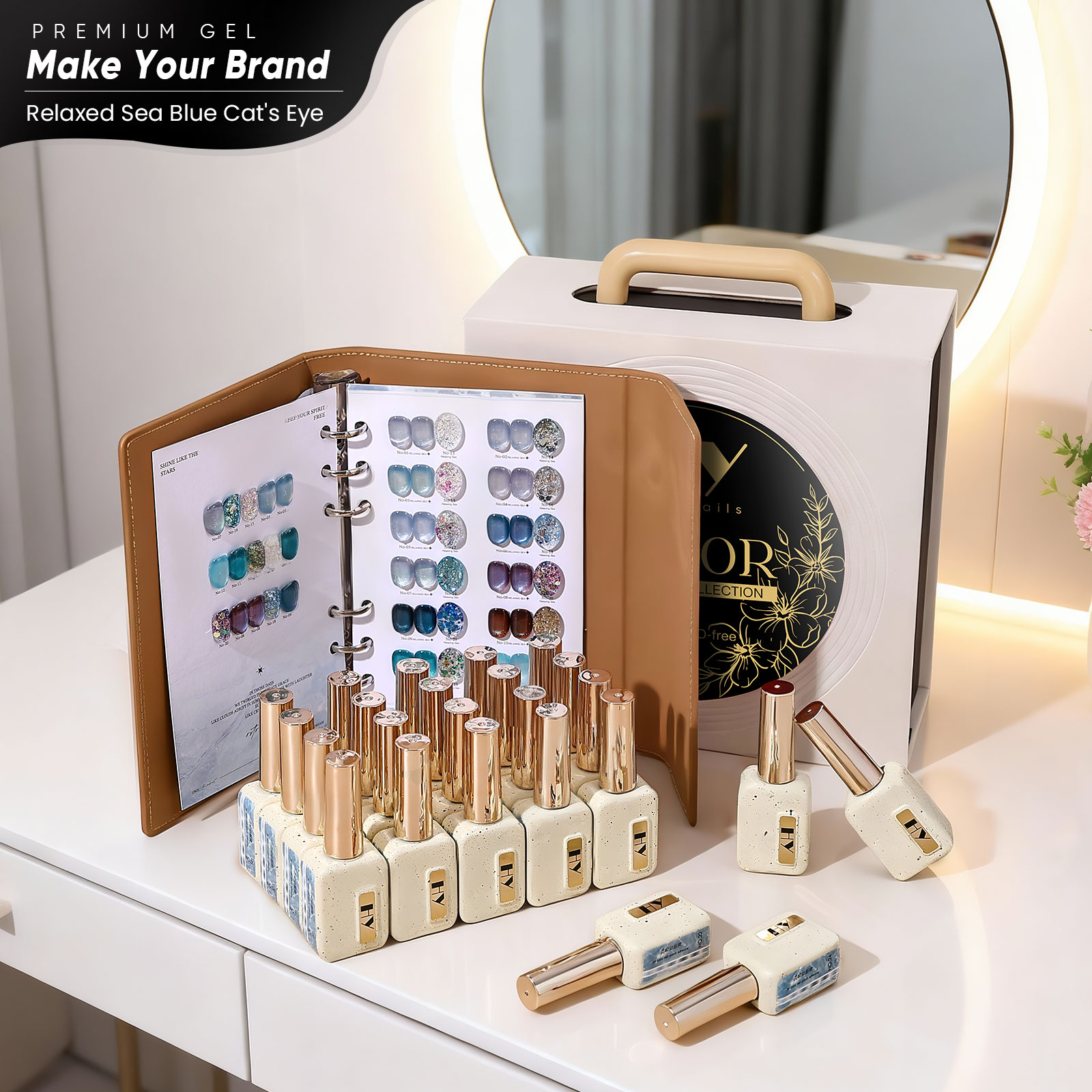 Custom 24 Colors Sea Blue Cat Eye Gel Polish | Glossy Finish & Private Label Manufacturer for B2B Brands