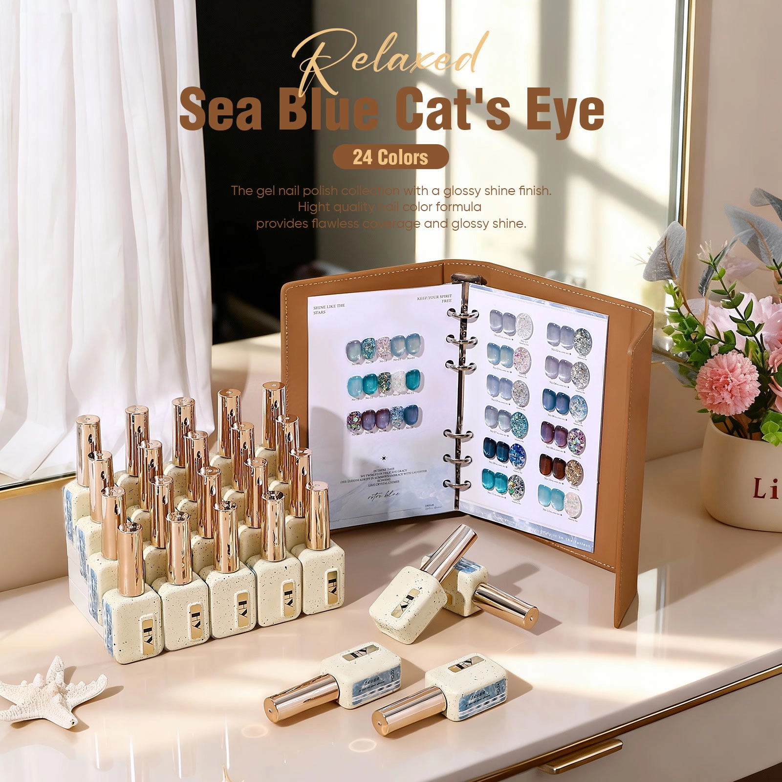 24 Colors Sea Blue Cat Eye Gel — Oceanic Shimmer Meets Magnetic Elegance