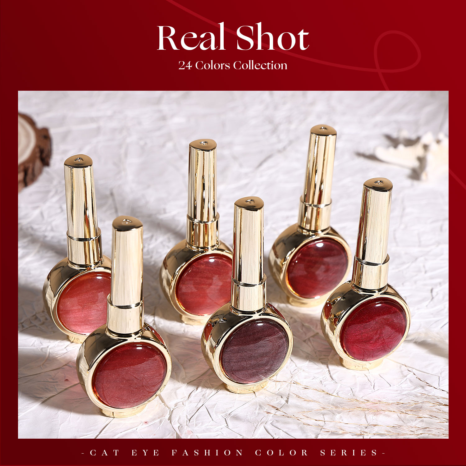 Discover 24 meticulously curated gilded shades with a captivating magnetic cat eye effect. Inspired by vintage elegance and timeless glamour, this collection combines soft champagne, radiant gold, warm bronze, antique metallic tones, and deep amber hues, creating a sophisticated and versatile look for every occasion.