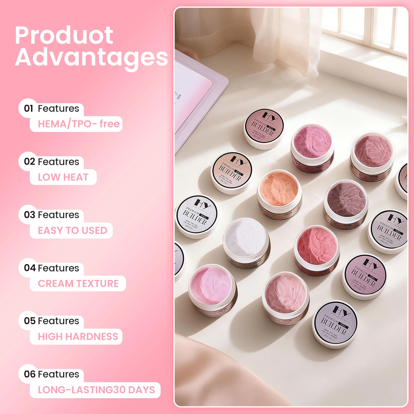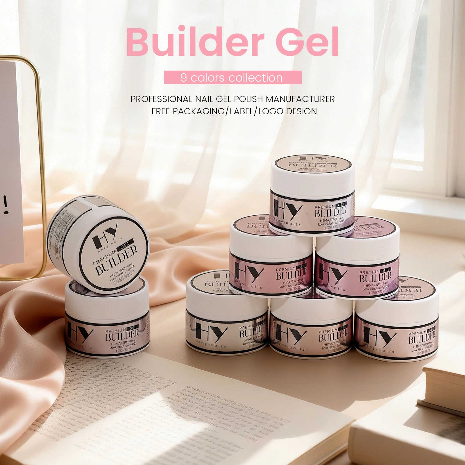 Professional Builder Gel Collection—HEMA&TPO-Free, Low Heat | 9 Colors, Long-Lasting | Hanyinails OEM Private Label
