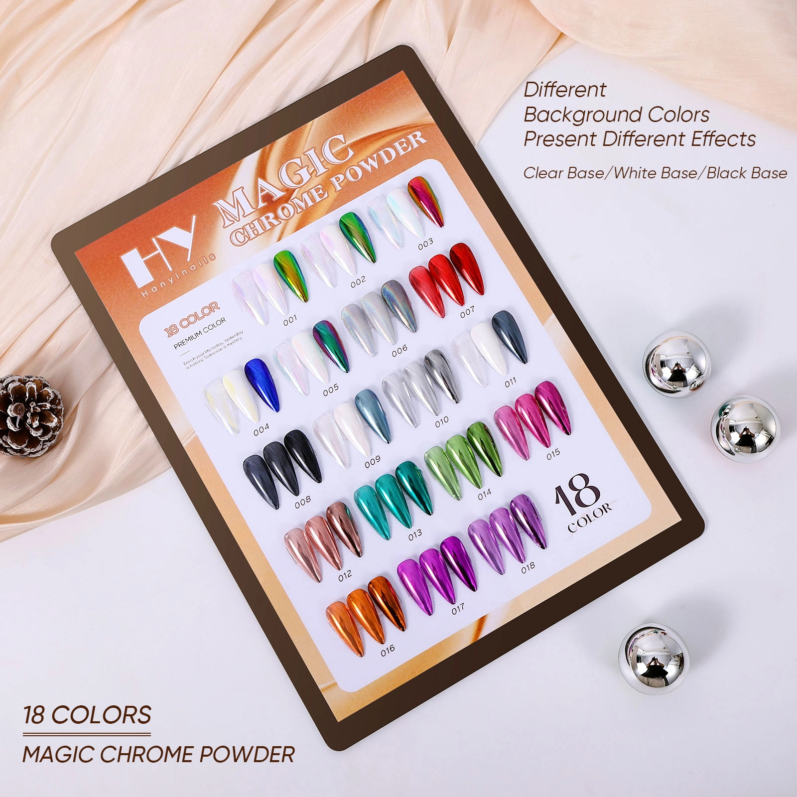 Professional Magic Chrome Powder - 18 Colors Mirror Effect Nail Pigment | Color-Shifting with Base Coat | Salon-Grade & OEM Available