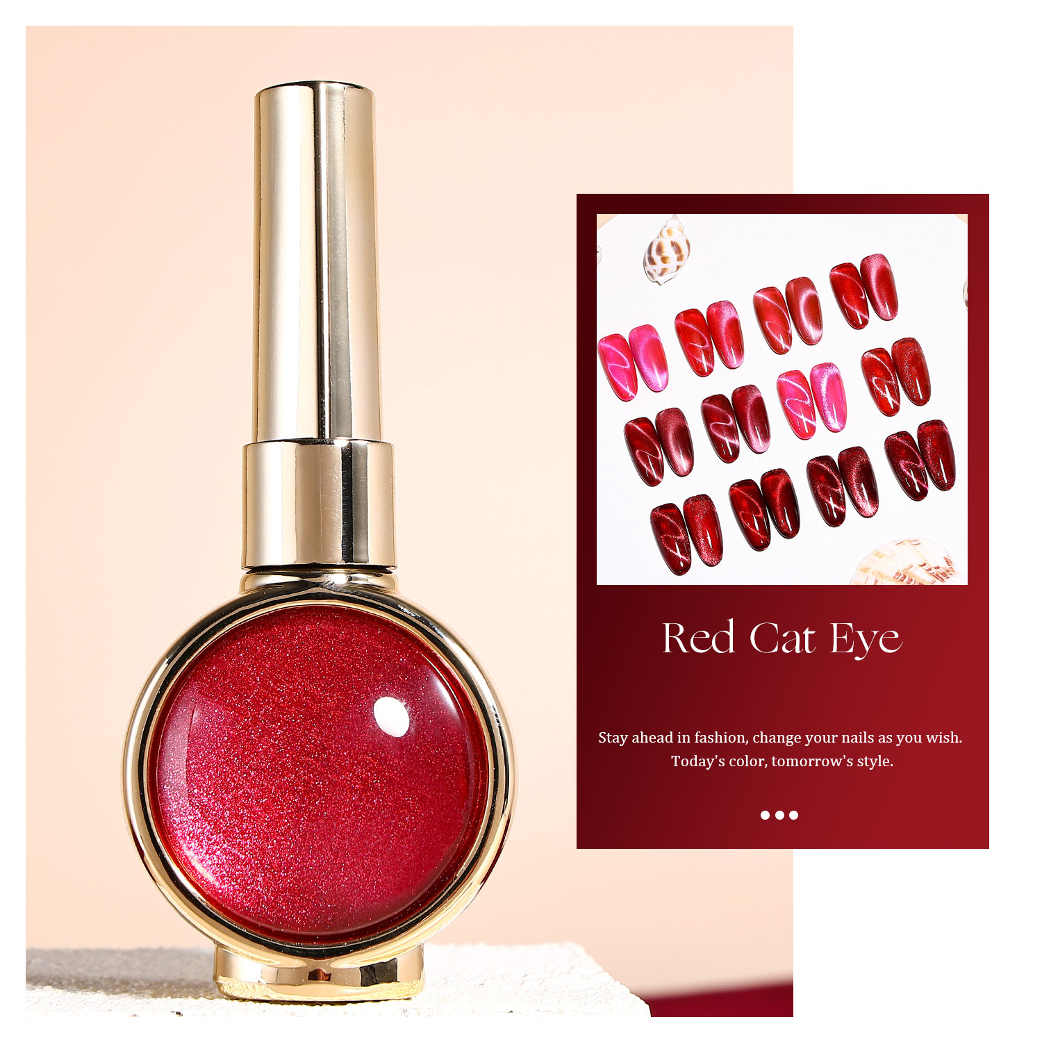 Discover 12 meticulously curated red shades with a captivating magnetic cat eye effect. Inspired by romance, passion, and timeless elegance, this collection combines soft rose, vibrant ruby, warm brick, deep burgundy, and rich wine tones, creating a bold and versatile look for every occasion.