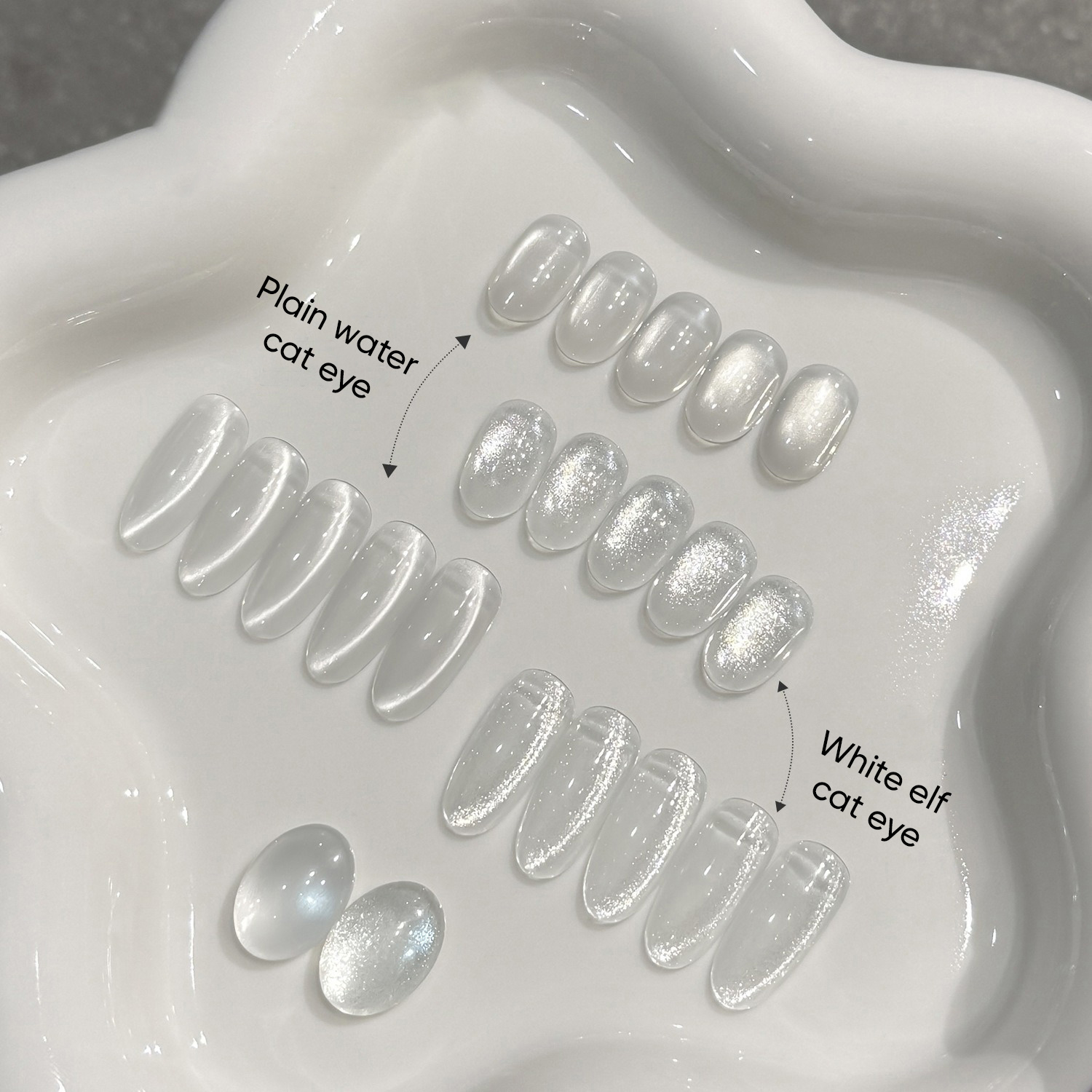 White Elf Plain Water Cat Eye Gel - No Gray Effect Crystal Gel for 3D Chrome Nails | OEM/ODM Nail Supplier
